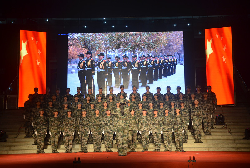 晚会采取台上文艺节目表演、台下新生军歌合唱穿插进行的形式,台上台下相互联动,所有2015级新生都既是观众、又是演员。军歌合唱由我校各学院共12支代表队参加,一支支红歌,一片片真情,《强军战歌》唱出了同学们的强军梦想以及献身强军实践的决心和壮志豪情,《走向复兴》的歌声充满希望,传达了同学们建设美好未来的理想和信念,《众人划桨开大船》铿锵有力,歌颂了齐心协力,团结互助的优良传统。2015级新生在接受了半个月的军训洗礼后,他们高昂的用军歌把热血的青春再度点燃,鼓声、乐声、朗诵声、呐喊声在聚光灯下交织出一篇华美乐章。今年正值抗战胜利七十周年和我校建校六十周年,这在夜空中回响的阵阵军歌是曲园学子对祖国,对母校最好的献礼。