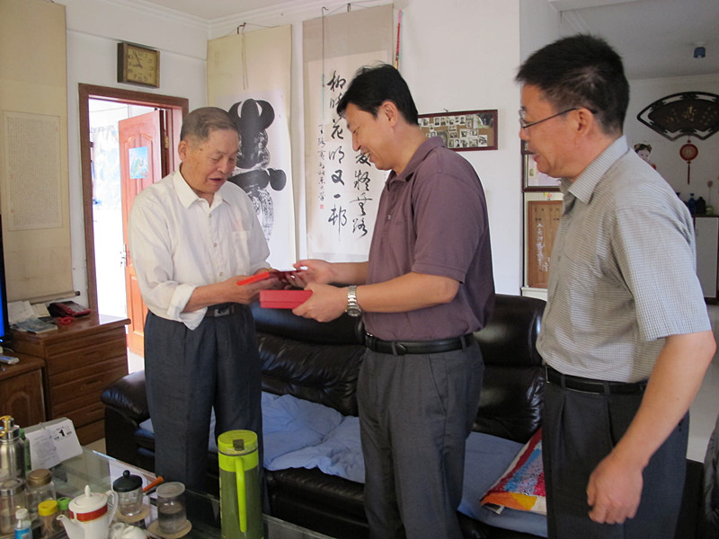 在纪念抗日战争胜利70周年之际,党委书记荆兆勋、校长戚万学、副校长张洪海、纪委书记郭辰夫9月1日上午看望慰问了王英斋、孟蒙、张明仁、麻文荣等抗战时期参加革命工作的老同志,为他们送去由中共中央、国务院、中央军委颁发的“中国人民抗日战争胜利70周年纪念章”,并为他们送上慰问金,向他们表示亲切的问候和崇高的敬意。学校办公室、人事处、离退休工作处负责人等一同前去慰问。