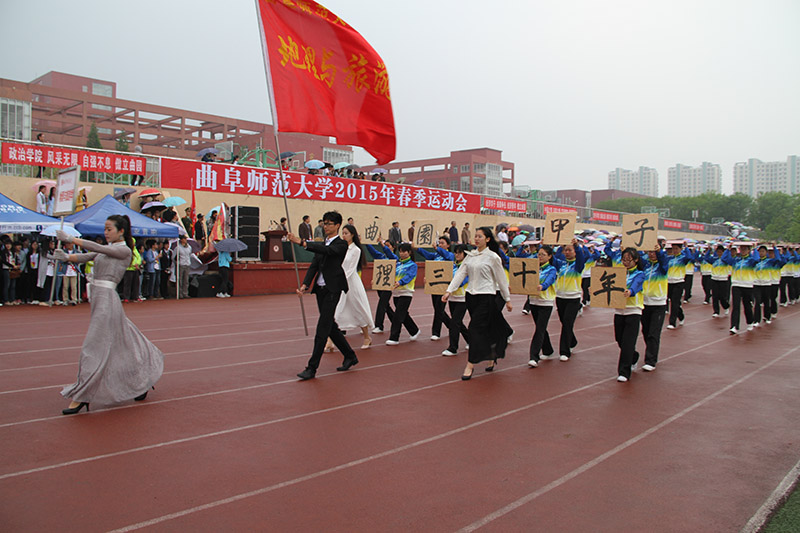 彩旗飘飘,鼓声铿锵。在激昂的运动员进行曲中,运动会开幕式正式拉开了序幕。首先映入眼帘的是迈着铿锵步伐的国旗护卫队,随后由信息科学与工程学院学生组成的彩旗方队,及裁判员代表队步伐整齐、昂首阔步地向着主席台走来。紧随其后的由12个学院组成的院系方阵依次步入会场,传媒学院方阵变换成“NO.1”的字样,象征着传媒学子一往无前、勇夺第一的目标。地理与旅游学院高举“地理三十年,曲园一甲子”的字牌,向曲园六十校庆献礼。法学院方队的学子身着法官袍,在赛场上挥洒着凛然正气。翻译学院方队向我们展示了多元文化的创新与朝气蓬勃的青春。踏着整齐步伐向我们走来的是工学院方队,他们拼凑成“工”字的队形,用自己的青春为学院代言。管理学院手举气球精神抖擞、昂首阔步地整齐入场,展现了管理学子积极向上的精神风貌。随后,国际文化交流学院方队的学子迈着矫健的步伐走向主席台,展现了世界多元文化的风采。经济学院方队的学子手举彩穗步入会场,展现了青春活力的形象。美术学院学子身穿充满青春活力的院服向我们走来,散发着青春的朝气。映入眼帘的一片蓝色是来自信息科学与工程学院的方队,他们整齐划一的步伐展现了斗志昂扬的风采。音乐学院整齐的方队展现了自信的青春斗志。最后出场的政治与公共管理学院迈着沉稳自信的步伐展示了恰同学少年,风华正茂的风采。各学院代表队通过各种精彩的入场方式,向我们展现了曲院学子意气风发的青春风采。