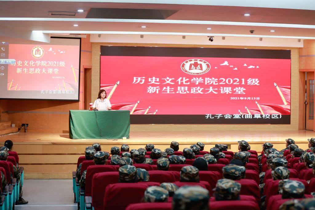 曲阜师大新闻中心讯(通讯员:刘贤贤)为激发新生的爱国热情,发扬革命英雄主义精神,培养艰苦奋斗、吃苦耐劳的坚强毅力和集体主义精神,9月13日,历史文化学院在孔子会堂举办爱国爱校主题思政课。辅导员刘贤贤、石璐及全体新生参加了活动。活动由辅导员石璐主持。